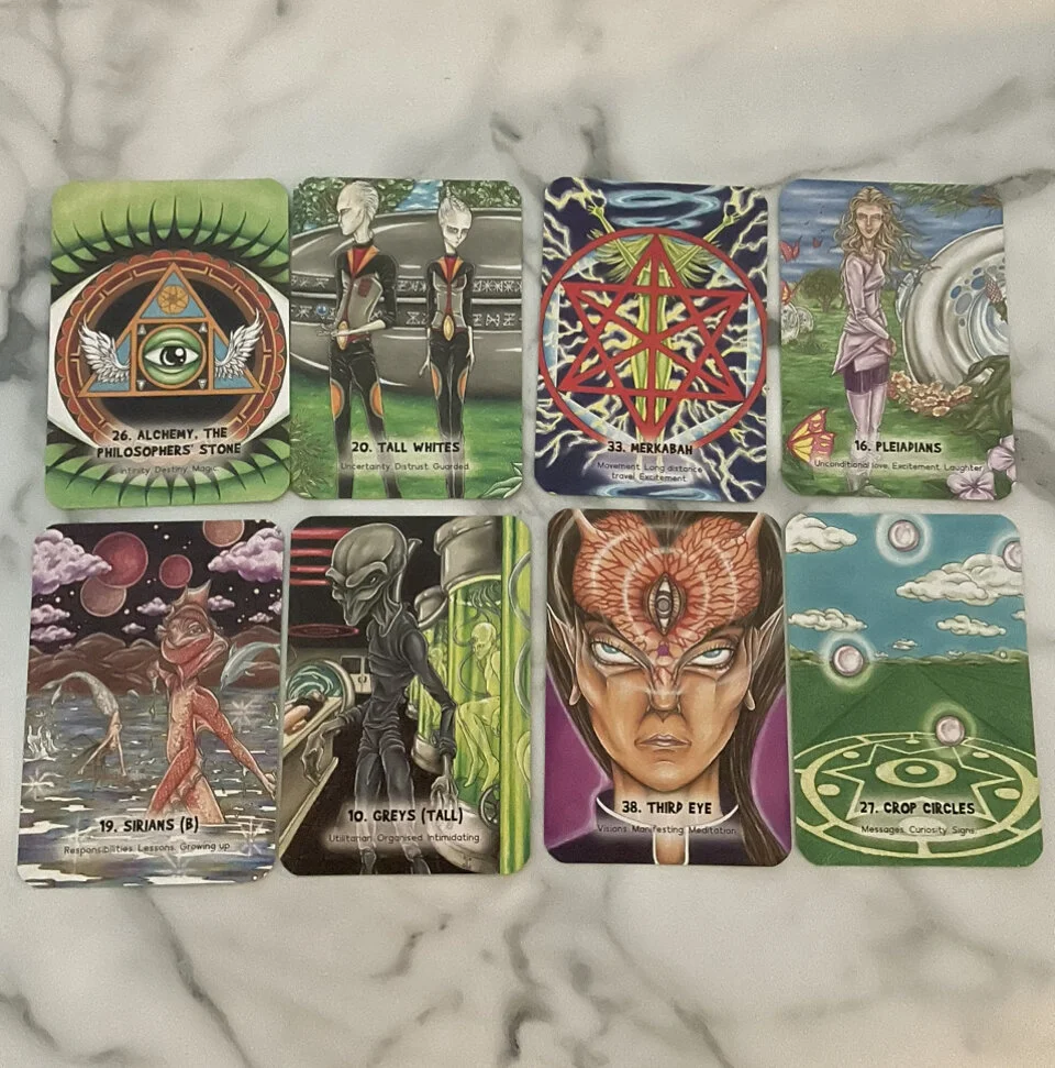 NEW! Alien Card Deck $33.33 Extended Personal Reading 45 min (includes birth-chart) $29.95 NEW! Evil Eye Bracelet/Necklace $4.99 NEW-All Colors!! Bohemian Full Moon Beaded Necklace $10.99 NEW!! Bohemian Necklace $10.99 Mermaid Dolphin Oracle Card Deck Sale Price: $12.00 Original Price: $16.99 Sale NEW!!! Zodiac 14 karat Gold Necklace $17.95 NEW!!! Amethyst/Rose Quartz Bracelet $10.00 Holographic Rider-Waite Ancient Tarot Card deck Sale Price: $11.11 Original Price: $13.00 Sale Moonflowers Sale Price: $3.33 Original Price: $11.11 Sale Zodiac charms $4.44 Lava Moon Rock Bracelets with Crystals $8.88